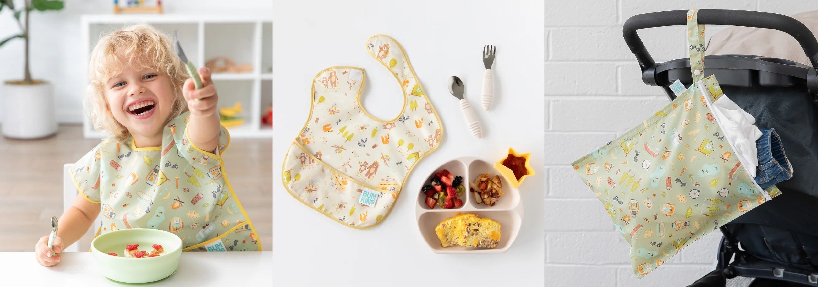 Adventure is calling with the Camp Friends + Camp Gear Collection. Featuring adorable wild animals and fun camping-inspired icons, these cheerful prints bring the spirit of the outdoors to everyday life. Both strong and easy to clean, the mix of waterproof bags and silicone gear helps keep messes at bay while giving kids the playful feeling of camp!