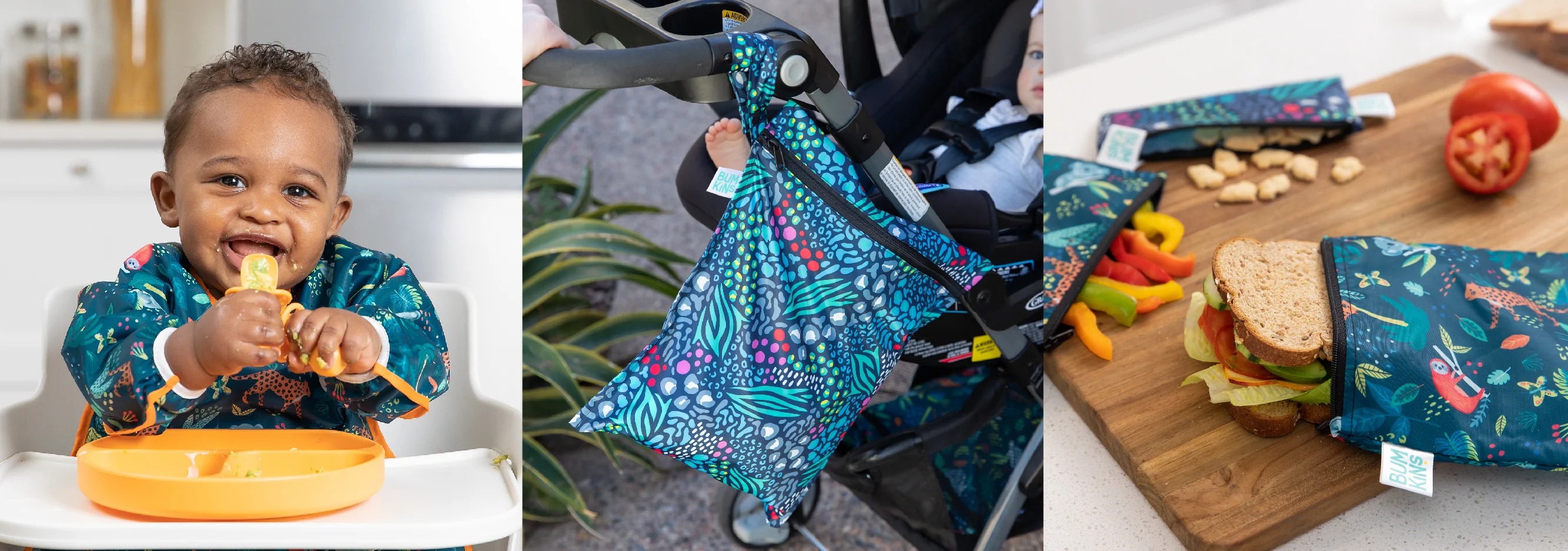 Turn everyday into a safari with the Jungle + Animal Prints Collection. Featuring cheetahs, sloths, and more, these bold designs carry a touch of adventure into every routine while keeping family life organized. With waterproof bags and silicone gear, parents get the practicality they need and kids get the fun they love!