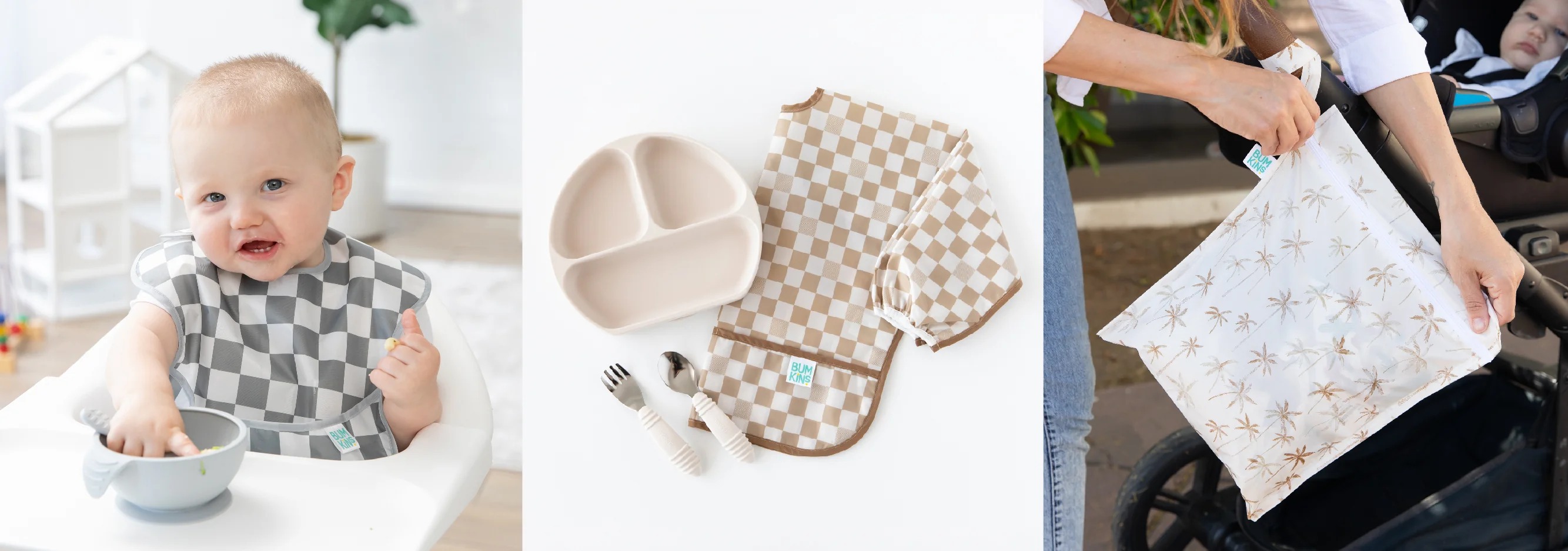Channel cool coastal energy with Palms + Checks—prints that feel like sunshine and retro poolside vibes. Breezy palm imagery and bold checkerboard prints bring a playful twist to everyday essentials. Waterproof gear makes cleanup simple so every moment feels like a mini vacay!