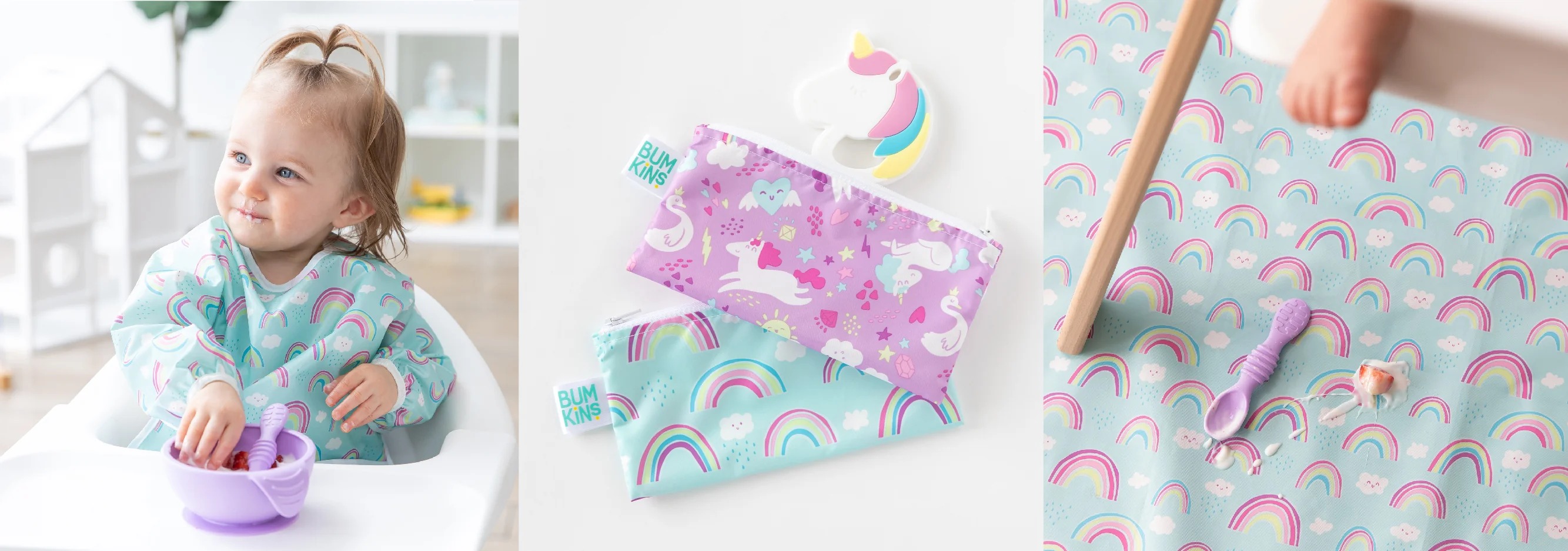 Bring some sparkle to everyday life with the Rainbows + Unicorns Collection. Colorful rainbows and whimsical unicorns keep kids smiling, while strong, easy-clean designs keep parents stress-free. It’s practical function wrapped in pure fun!